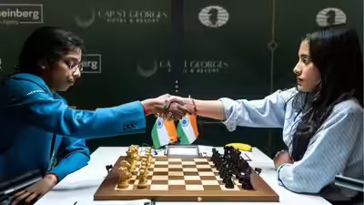 New Delhi: In the zero-sum world of elite chess, friendships between compatriots often have to be sidelined across the board. This was evident at the Cape St Georges Hotel and Resort on Wednesday as India’s two sensations, R Vaishali and Divya Deshmukh, faced off in a crucial Round 9 clash of the women’s contenders.In what can be described as a perfect combination of tactical precision and sheer dominance, Vaishali dismantled Divya’s defense in just 31 moves to take the co-lead in the women’s section.