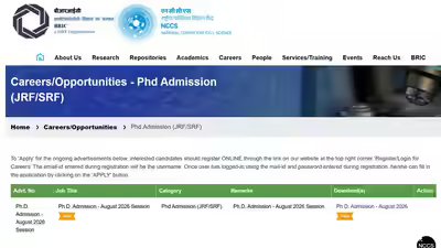 NCCS PhD Admission August 2026: The National Center for Cell Science (NCCS), Pune has announced that applications are open for its Ph.D. Program for August 2026 Session. Indian candidates with post graduate degree in any branch of science and strong academic record are eligible to apply. Applicants must also demonstrate a commitment to research in advanced biology, including cell and molecular biology, structural biology, bioinformatics, systems biology, neuroscience, immunology, infection biology, cancer biology, and microbial ecology.Candidates must have minimum 60% marks or equivalent grade point average (GPA) in their post graduate studies. Relaxation of 5% marks is applicable for SC, ST, OBC, and PWD candidates as per Government of India norms. Eligible applicants should hold a valid Junior Research Fellowship (JRF) awarded by CSIR, UGC, DBT (Category I), ICMR, or BINC. Those who have qualified in JGEEBILS examination conducted by NCBS/TIFR in December 2025 are also eligible, limited number of NCCS fellowships are available for this group.Online applications and interviewsAll applications must be submitted exclusively through the online portal. Applicants must have a Gmail account to complete this process. Last date for submission of online applications is 11 May 2026. Shortlisting for interviews will follow NCCS selection criteria, and submission of an application does not guarantee interview or admission.• Direct link to check and download official notice • Click. Here To apply onlineAge limit and reservation policiesUpper age limit for JRF candidates is 28 years as on 1st August 2026. Age relaxation is provided for women, SC, ST, OBC, and PWD candidates as per Government of India guidelines. Reservation policies and relevant certificates must be submitted at the time of joining.Program details and campus facilitiesThe NCCS PhD program is full-time, and selected students may be required to live on campus. Hostel accommodation is provided on first come first serve basis. The terms and conditions of the fellowships are determined by the respective funding agencies.Research Departments and FacultyNCCS offers doctoral research in several areas of modern biology. Detailed information about research groups and faculty profiles is available at www.nccs.res.in.